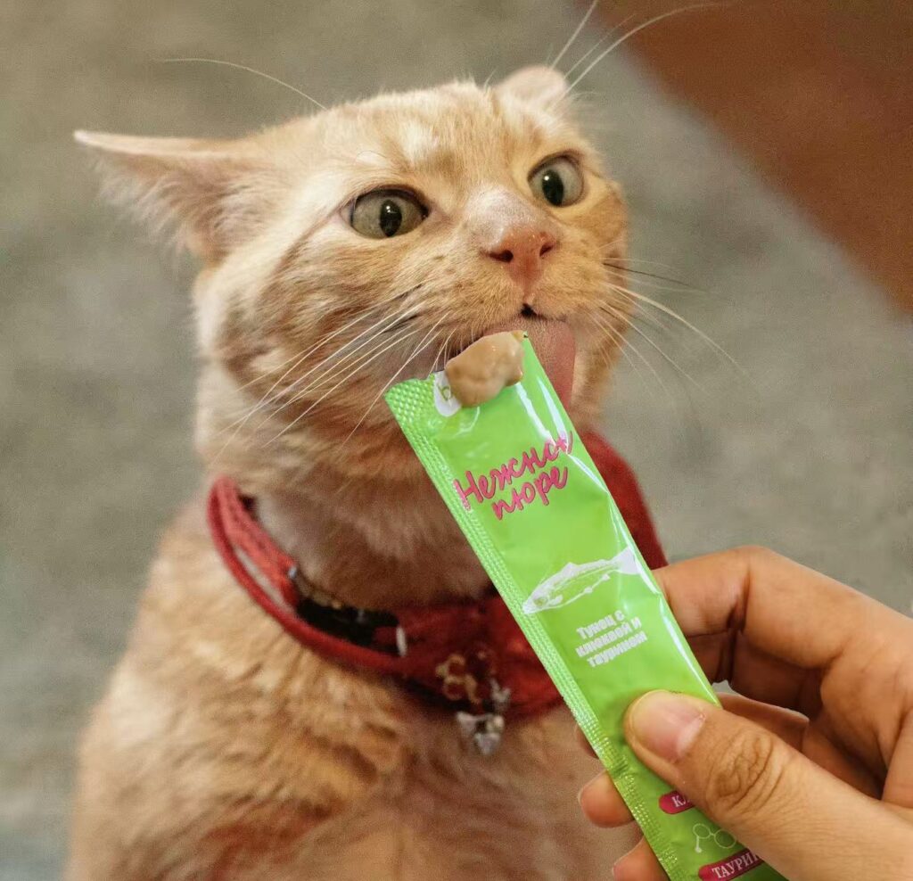Ваш питомец будет в восторге! Жевать не нужно — кошки будут слизывать с ложки или прямо из пакета, наслаждаясь непревзойденным вкусом. Это мгновение чистого блаженства, которое заставит их мурлыкать и тереться носом о ваши ноги.