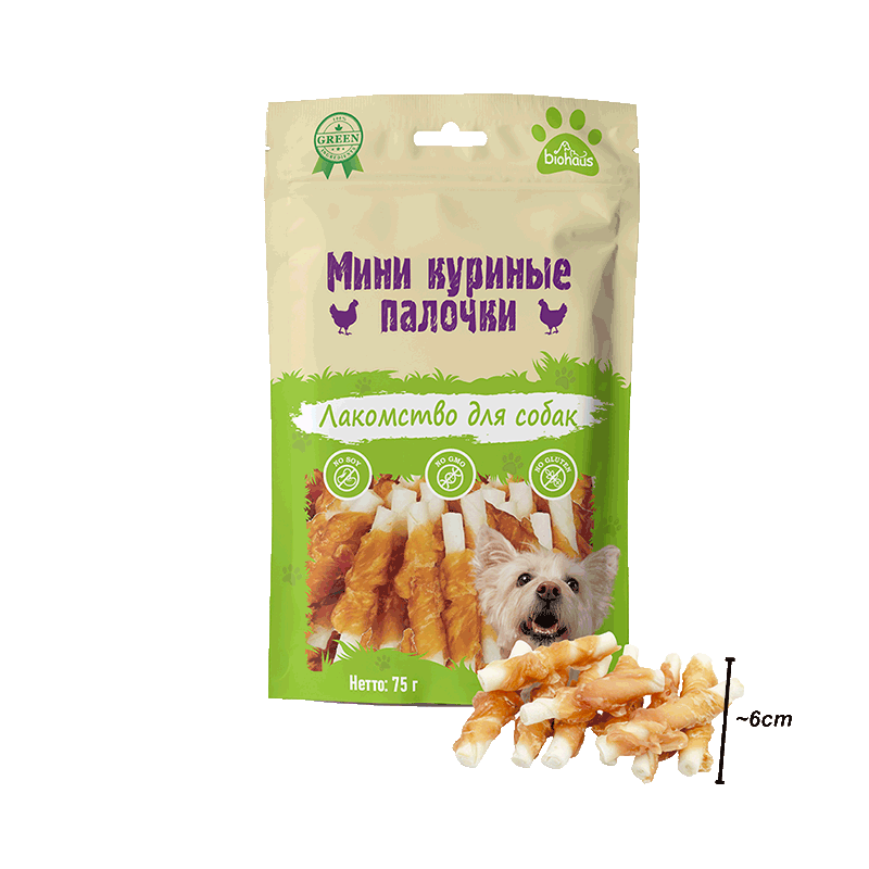 Соблазнительный вкус курицы + Прочная MINI палочка для жевания = Удовлетворит инстинкты грызть И порадует вкусом!