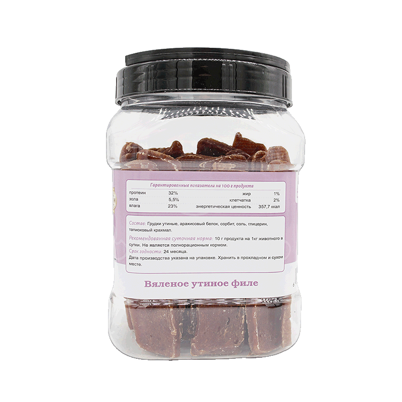 Состав: грудки утиные, арахисовый белок, сорбит, соль, глицерин, тапиоковый крахмал, яичный желток.