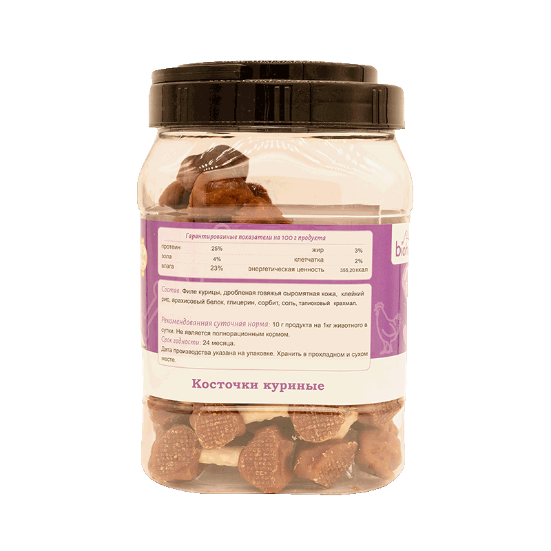 Состав: Филе курицы, дробленая говяжья сыромятная кожа, клейкий рис, арахисовый белок, глицерин, сорбит, соль, тапиоковый крахмал.