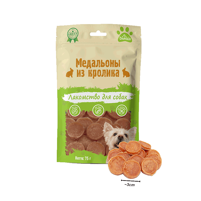 Хрустящие медальоны из нежнейшей крольчатины — идеальная форма для дрессировки: щенок мгновенно фокусируется на награде! Бережная сушка сохраняет природный аромат и гипоаллергенную пользу кролика. Каждый кусочек в порционном пакете — словно только из печи: максимум хруста, ноль окисления. Подарите питомцу восторг чистой свежести и здоровой мотивации!