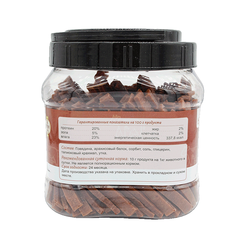 Состав: говядина, арахисовый белок, сорбит, соль, глицерин, тапиоковый крахмал, утка.
